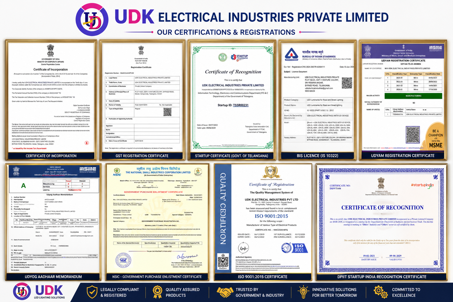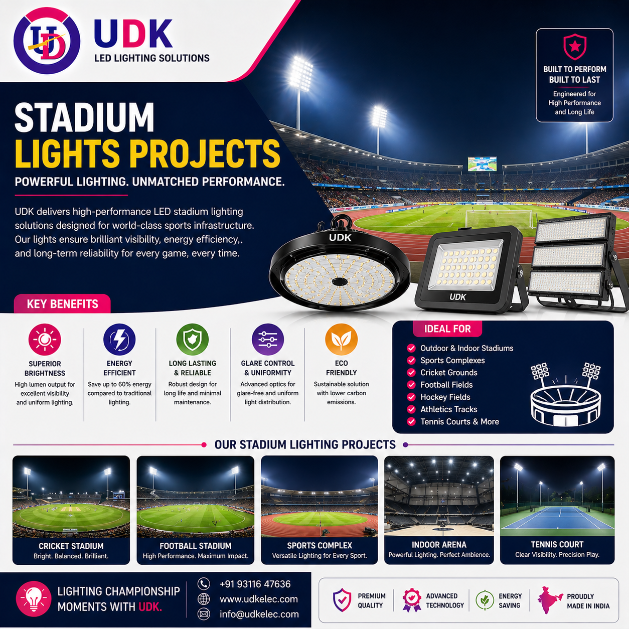 At UDK Electrical Industries, we deliver high-quality, energy-efficient, and long-life LED lighting solutions trusted by industries, commercial spaces, and government projects. Our portfolio highlights our commitment to premium quality, reliable performance, and timely project delivery.