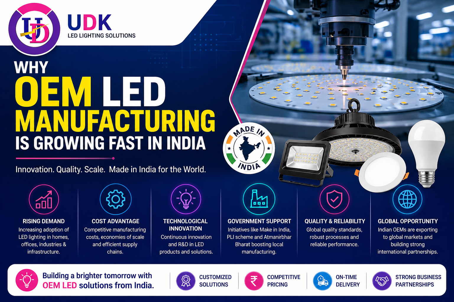 Learn why brands across India choose OEM LED manufacturers like UDK for quality, customization, and large-scale production.