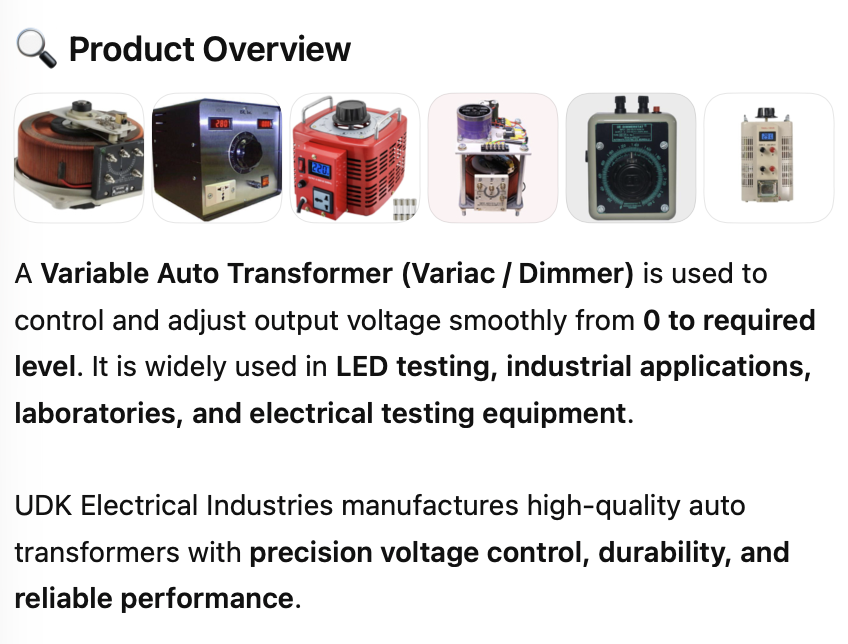 UDK Electrical Industries Private Limited is a leading Auto Transformer, Variac, and Dimmer manufacturer in Hyderabad, India, offering high-quality voltage control solutions for industrial and LED testing applications.